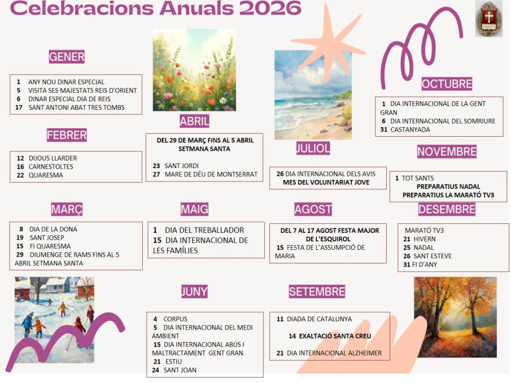 - 24 d’abril: Dinàmiques d’artteràpia sobre el dol, una activitat adreçada a les famílies i dinàmiques dedicades als residents dins de la programació habitual del centre, durant el mes d’abril.